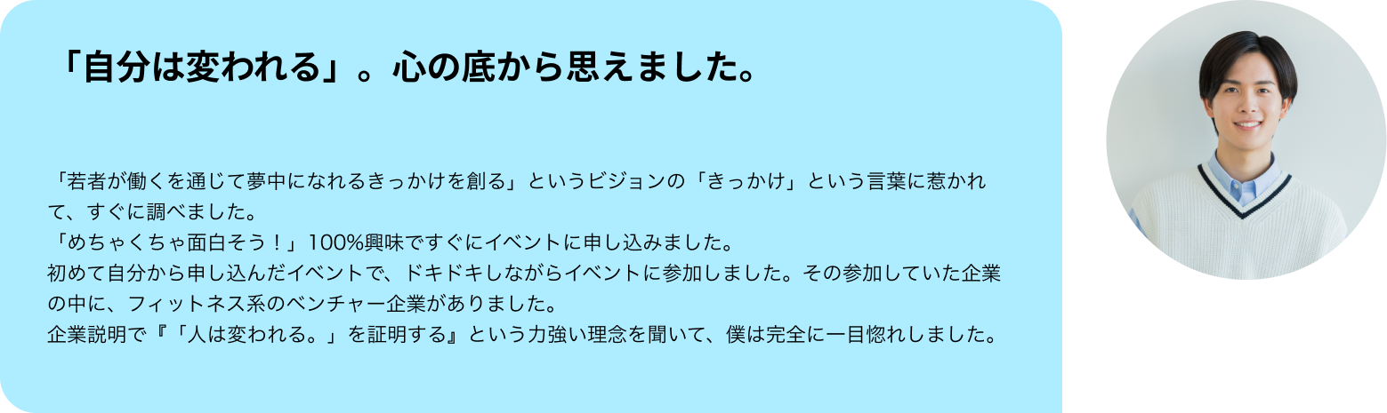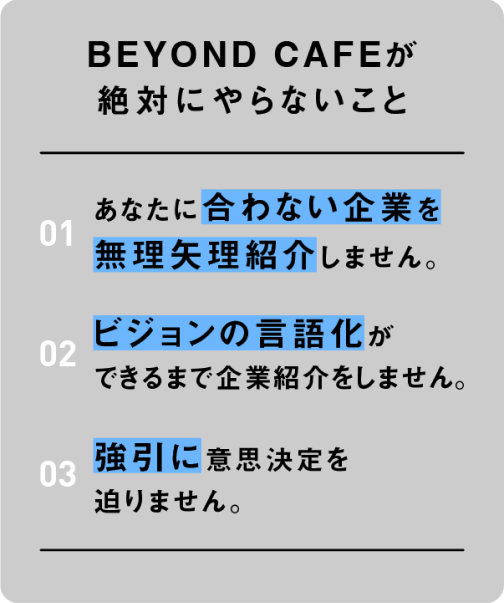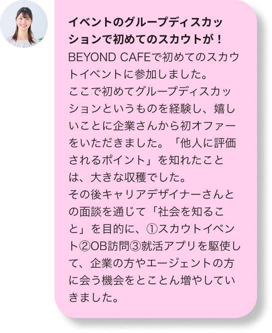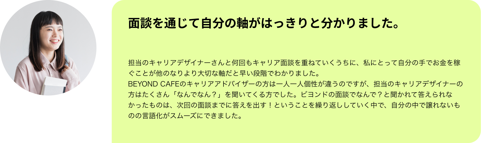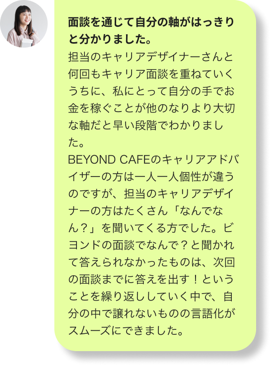 BEYOND CAFEには、本当に自分が進みたい道を発見し就職したOB・OGたちが多くいます。